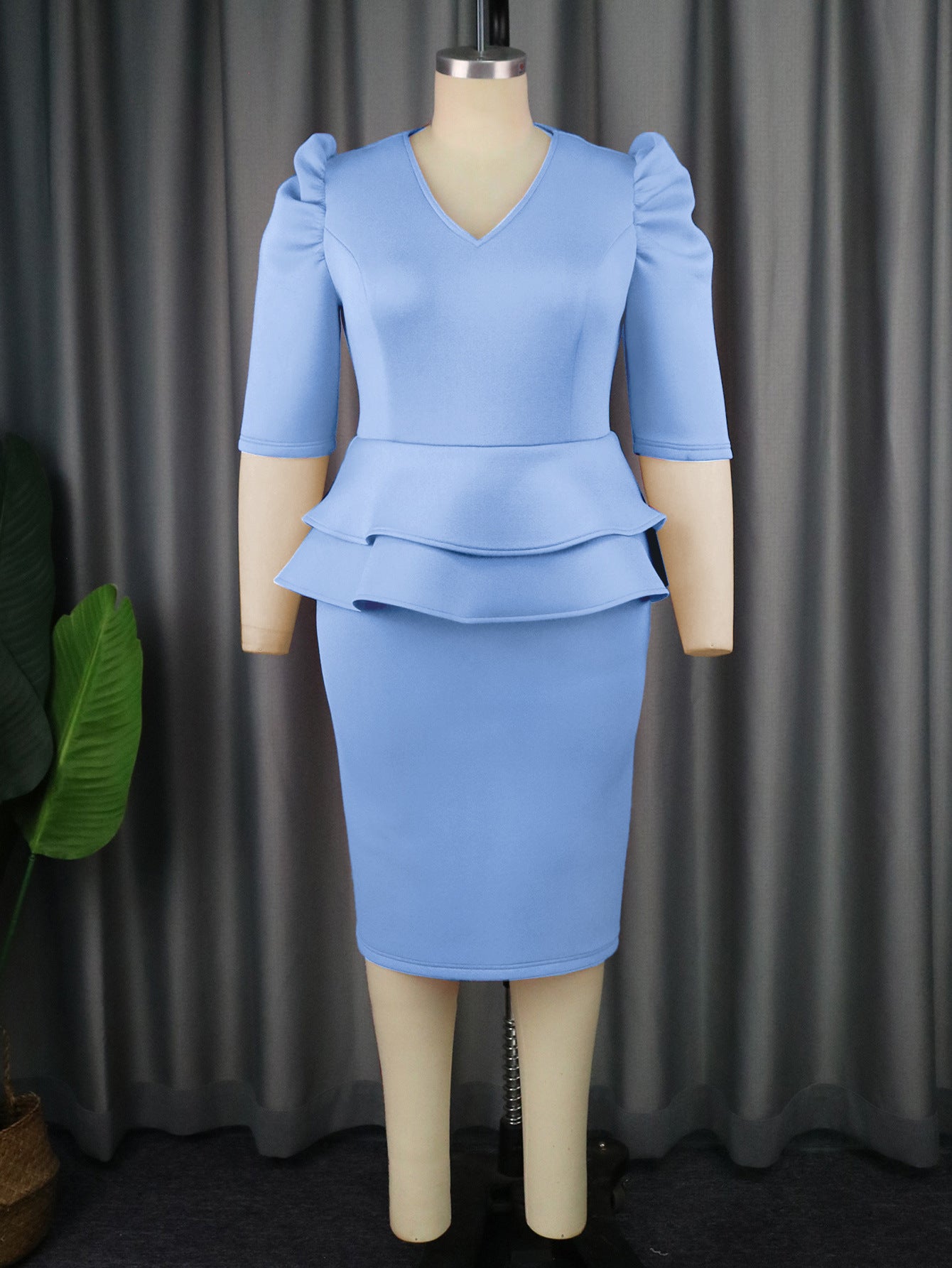 Pleated Sleeve Stitching Flab Hiding High Waist Dress