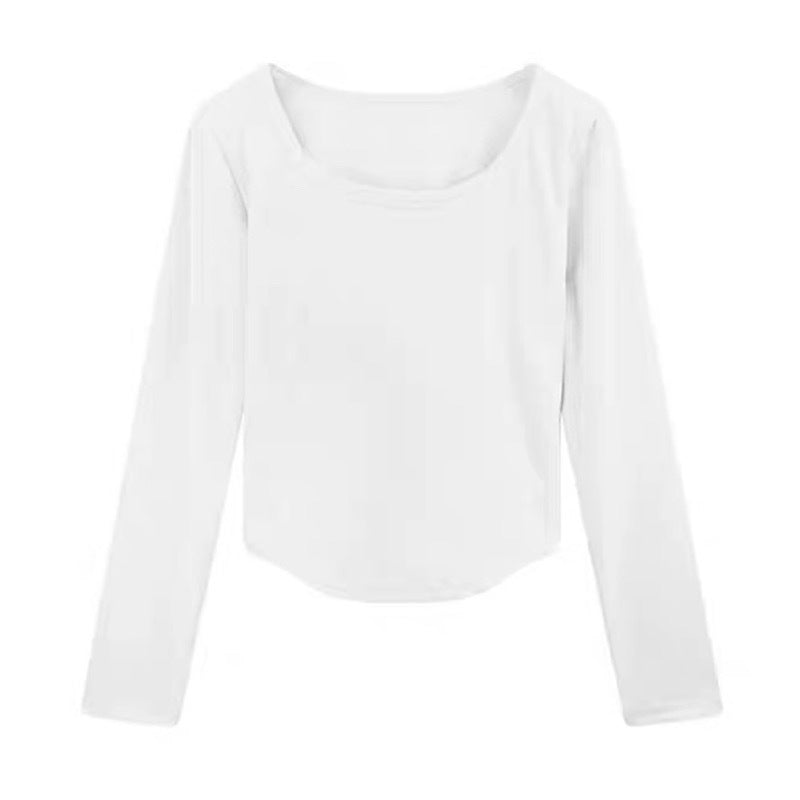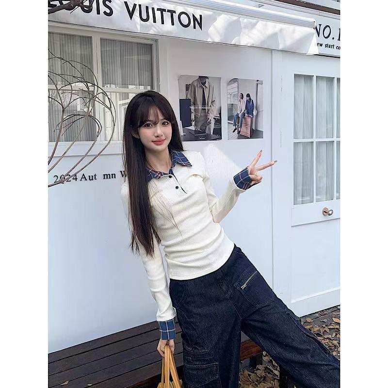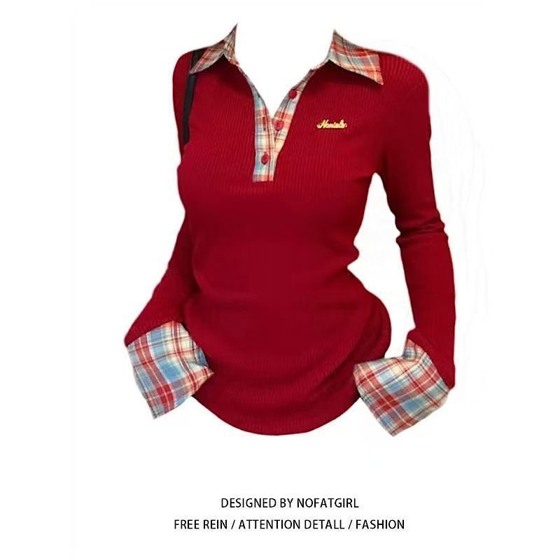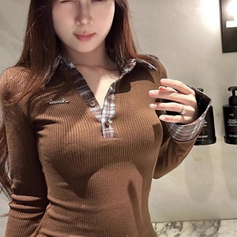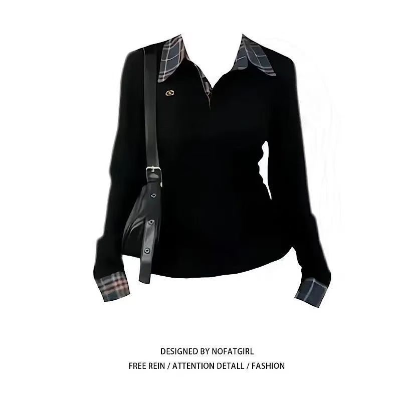 Polo Collar Long Sleeve Design Slim Fit Hot Girl Bottoming Shirt